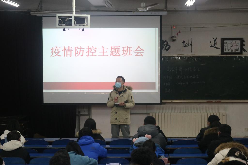 为增强学生疫情防控意识,提高学生的自我保护能力,1月7日晚,我院在建工阶梯开展了疫情防控主题班会。此次班会由20级辅导员孔令冉老师主持,20级全体同学到场参加。